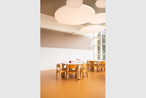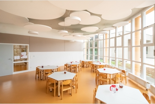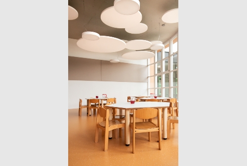 Der bestehende Kindergarten Herrenäcker wird ganztagesfähig umgebaut und renoviert. Der ehemalige Bewegungsraum wird zum Kinderbistro mit Cook & Freeze Küche.