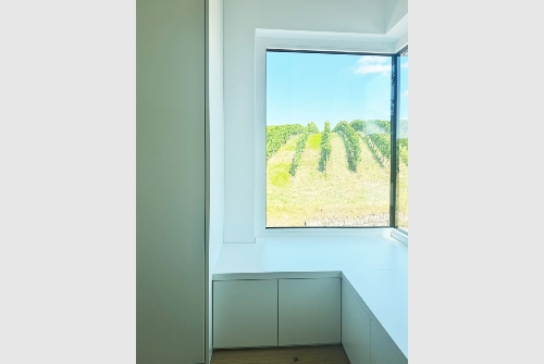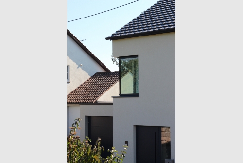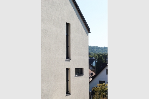 In dörflicher Lage und doch nah an der Stadt bietet das Wohnhaus B den neuen Lebensmittelpunkt für eine junge Familie. Das Grundstück, direkt an den Weinbergen, war zu Beginn der Planungsphase noch mit einem Mehrfamilienwohnhaus bebaut. Der äußerlich schlichte Satteldachbaukörper fügt sich stimmig in die Hanglange und die umgebende Bebauung ein.