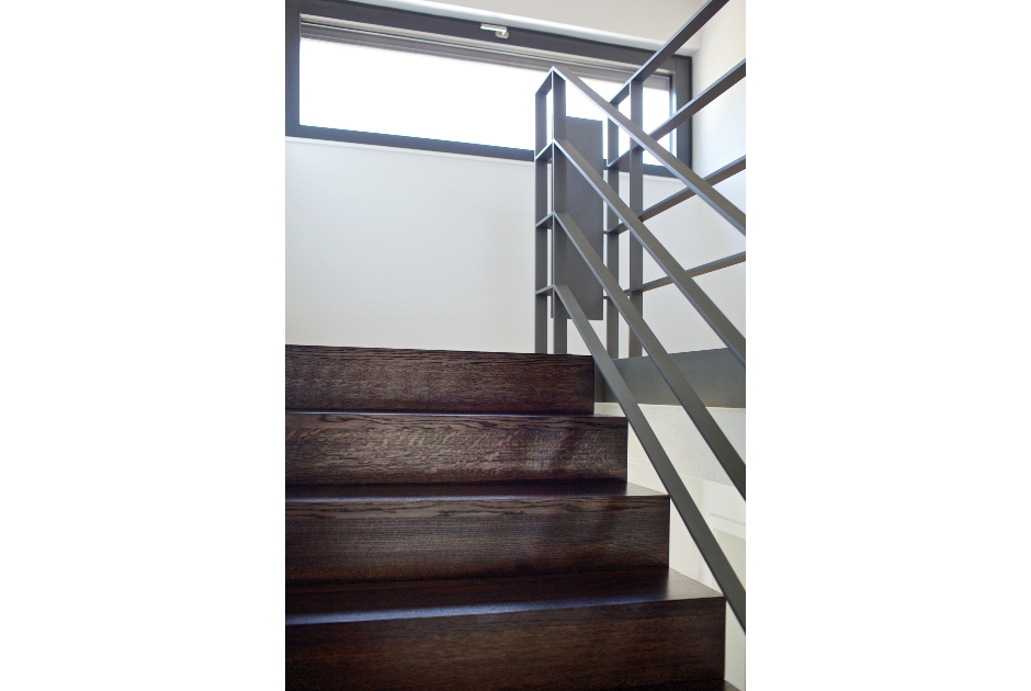 Erschlossen wird der Wohnbereich vom hellen freundlichen Eingangsbereich über eine in der Gebäudemitte angeordnete einläufige Treppenanlage.